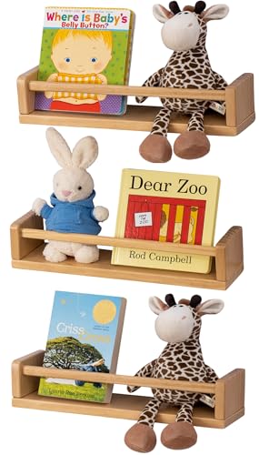 Gieanoo Bokhylla för barnkammare, uppsättning av 3 flytande hyllor massivt naturligt trä 40 cm bokhylla barnrum väggmonterad baby flytande bokhyllor dekor för barnrum, badrum, kök