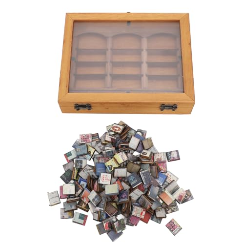 Miniatyrbokhylla Massivt trä Konstnärlig Stressavlastare Dekorativ Display Unik Handgjord Present, Fylld med Vikta Böcker för Skrivbord, Vardagsrum (Bokhylla + Miniböcker)