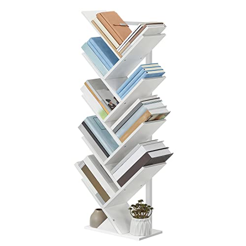 HOOBRO Bokhylla, stående hylla i trädform, golvstående bokhyllor med 9 nivåer, bokhylla för hemmakontoret, för förvaring av böcker, CD-skivor, stark och stabil, för vardagsrum EWT08SJ01G1