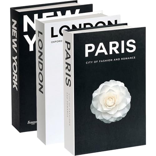 YVPSI 3-delat mode dekorativ bok, inbunden moderna dekorativa böcker staplade dekorationer dekor böcker för heminredning bokhylla soffbord visa hyllor vardagsrum (Rom/Paris/London)