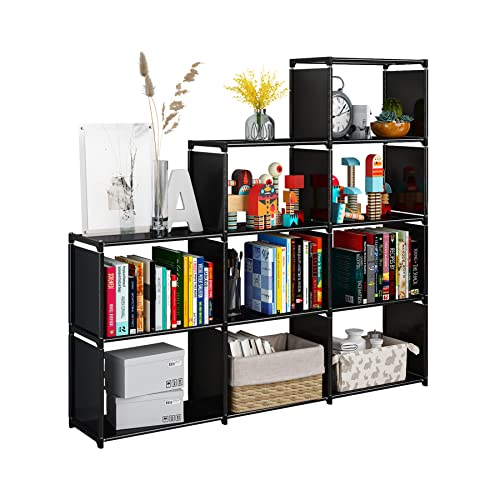 JIUYOTREE 9 kuber bokhylla under trappor förvaringsenhet mångsidig kub förvaringsorganisatör för vardagsrum, böcker, leksaker, kläder, verktyg, svart