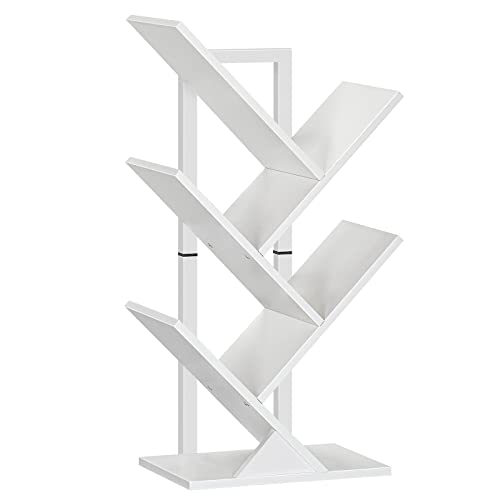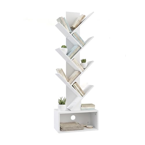 HOOBRO Bokhylla, stående hylla i trädform, golvstående bokhylla med 4 nivåer, bokhylla för hemmakontoret, för förvaring av böcker, CD-skivor, stark och stabil, för vardagsrum, vit EWT04SJ01G1
