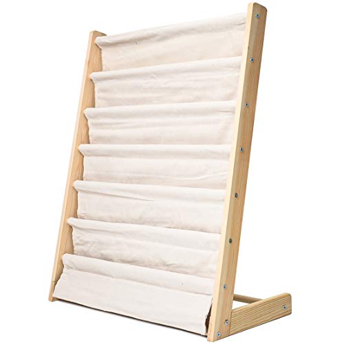 Morimoe barnsling bokhylla med ficka, 6 nivåer, naturligt trä, böcker förvaringsställ, perfekt höjd läsning kul (B :60 cm)