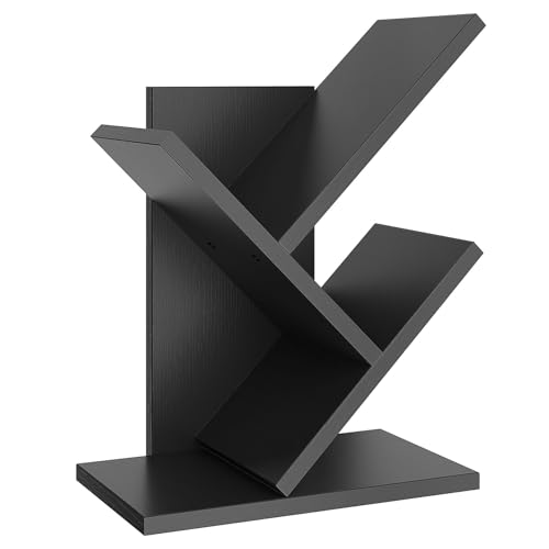 YMYNY Bokhylla med 4 nivåer, liten bokhylla, modernt träbokförvaringsställ, fristående bokhylla för böcker/filmer/CD-skivor, smalt displayställ för vardagsrum, hemmakontor, svart HBC014B
