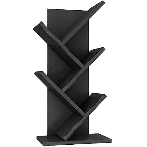GIANTEX Trädbokhylla, med 8 hyllor, bokhylla med avtagbar låda, design för CD-skivor, tidskrifter, böcker, 38 x 20 x 149,5 cm, 4 färger (svart)