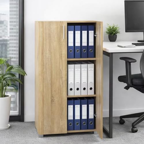 BAKAJI Kontorsskåp Segling Bokhylla Garderob 3 Hyllor Dokumentförvaring Två dörrar med hyllor Inredning Vardagsrum Vardagsrum Trävardagsrum H Storlek H 115,5 x 60 x 31 cm (Ek)