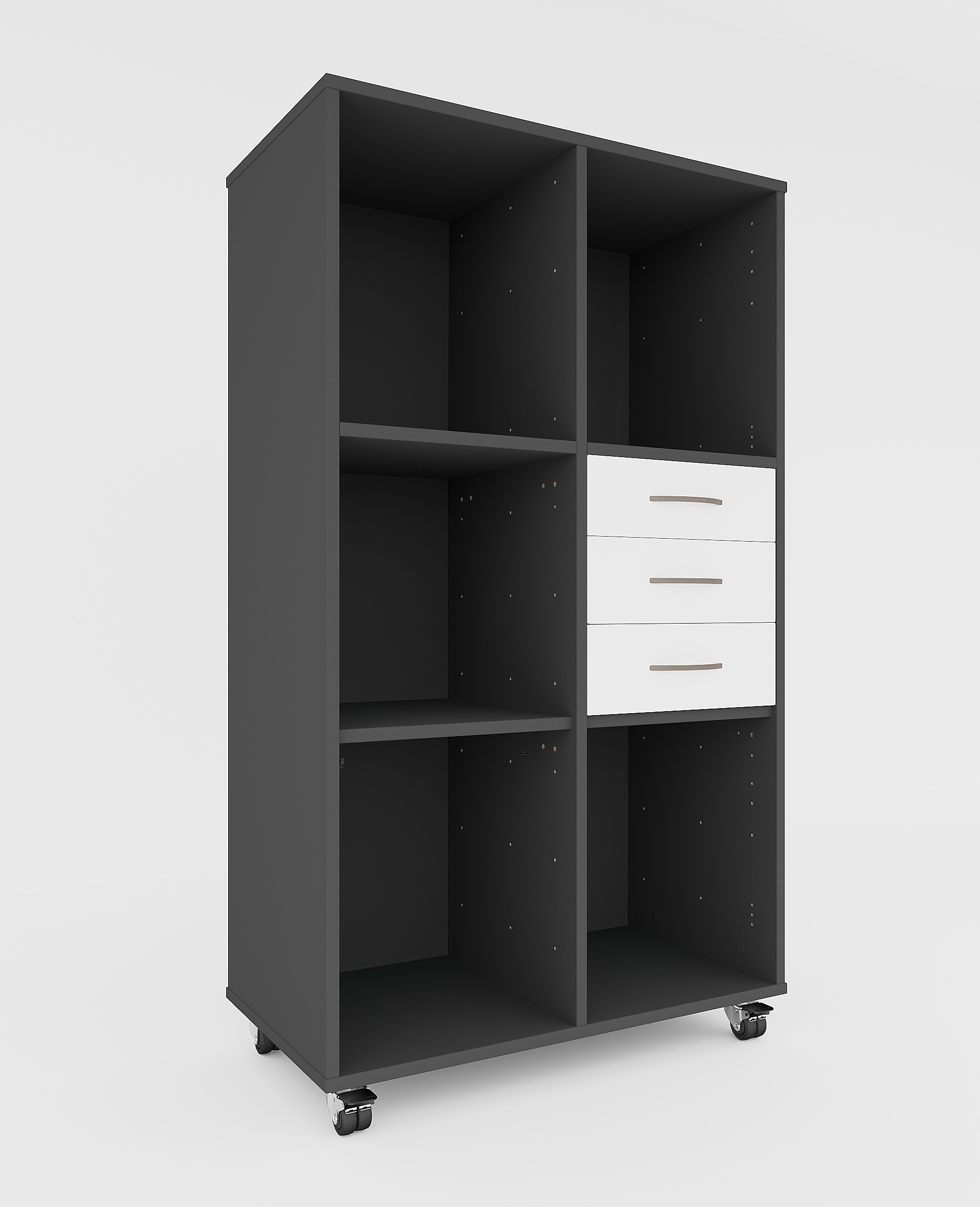 Stay bokhylla med 6 fack och 3 lådor, med hjul