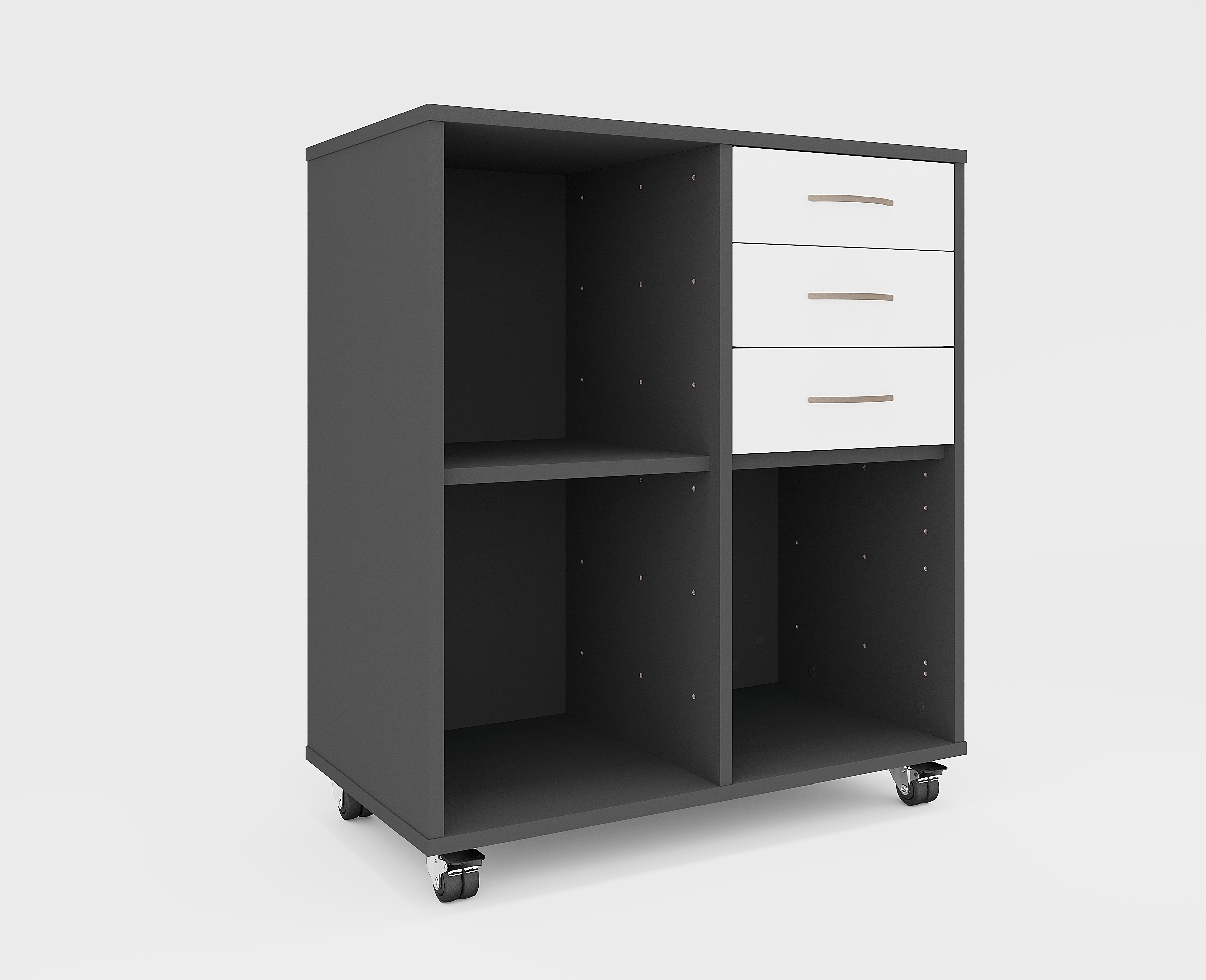 Stay bokhylla med 4 fack och 3 lådor, med hjul
