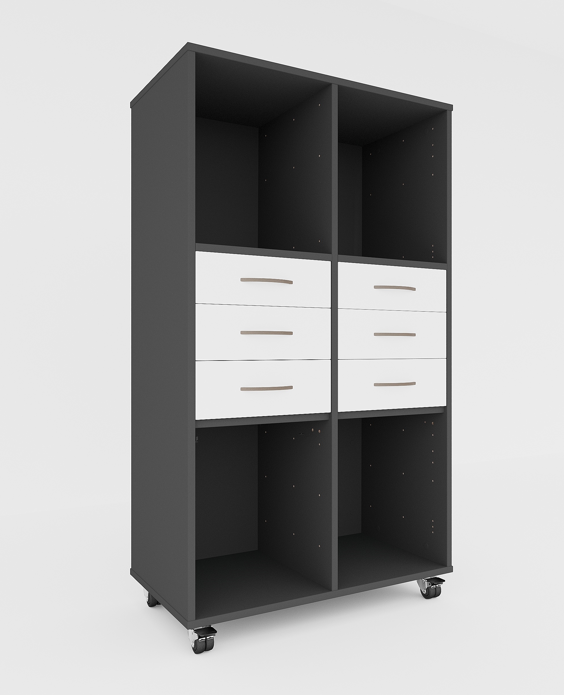 Stay bokhylla med 6 fack och 6 lådor, med hjul