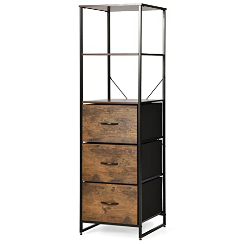 Giantex Förvaringsskåp, industriell stil, sidoskåp, byrå med 3 lådor, högt förvaringstorn, stående hylla, bokhylla, köksskåp, vardagsrumsskåp, 43 x 39 x 156 cm