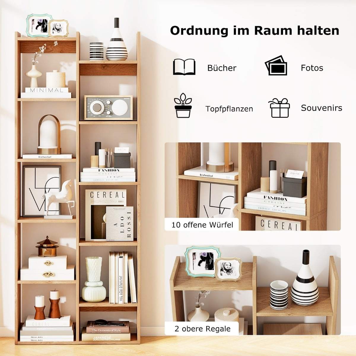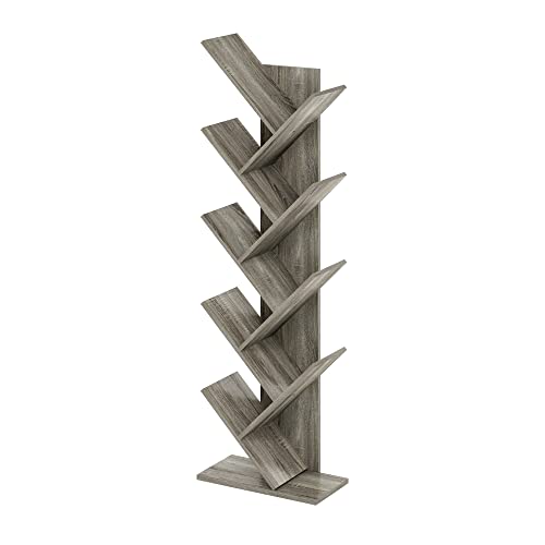 Furinno träd bokhylla 9 nivåer golvstående trädbokhylla, fransk ek