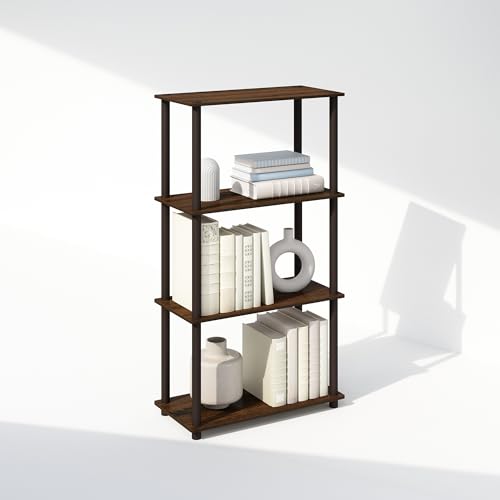 Furinno TURN-TUBE bokhylla, bokhylla med 4 nivåer, bokhylla med mångsidigt kompakt displayställ, 29,46 x 59,94 x 109,73 cm, för vardagsrum, sovrum, hemmakontor, valnöt/brun