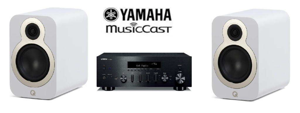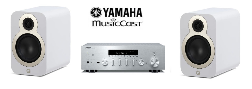 Yamaha WiFi Stereopaket High-Power bokhylle högtalare Silver förstärkare med vita högtalare