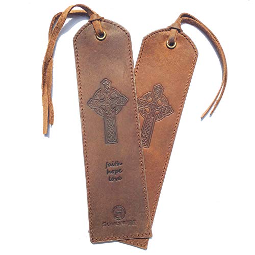 Läderbokmärke Handgjort Med Keltiskt Kors Design - 2 Pack Äkta Läder Bokmärke - Perfekta Bokmärken För Män För Kvinnor Och Barn | Bra Idé För Läder Gåvor För Bok Läsare Författare