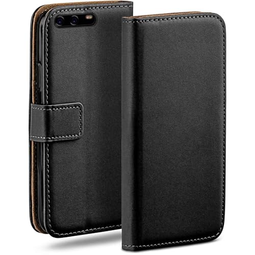 MoEx Flipfodral för Huawei P10 Plus, mobiltelefonfodral med kortplats, 360 graders flip-fodral, bokomslag, veganskt läder, djupt svart