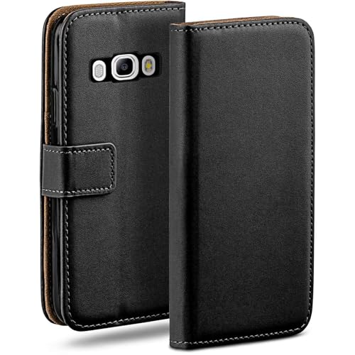 MoEx Flip-fodral för Samsung Galaxy J5 (2016), mobiltelefonfodral med kortplats, 360 graders flipfodral, bokomslag, veganskt läder, djup svart