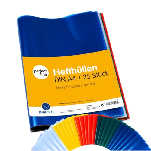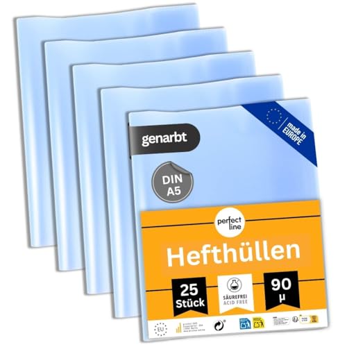perfect line - 25 skyddsomslag A5 genomskinliga, flexibelt och avtorkbart skydd för häfte, bokskydd med omslag, skyddsomslag för arbete, omslag för skolhäften (DIN-A5 (Porträtt))