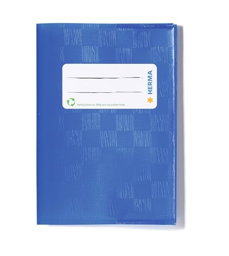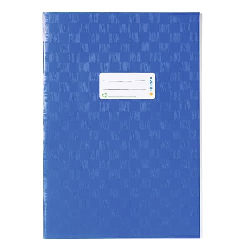 HERMA A5 raffiablått omslag, Bokomslag med etikett & raffiastruktur av slitstark & avtorkningsbar polypropenfilm, bokskydd för skrivböcker, färgat