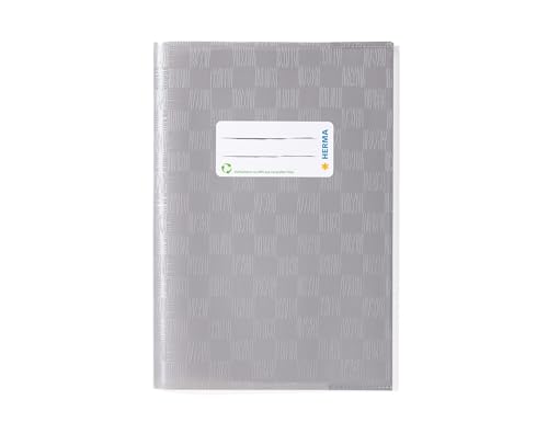 HERMA 7428 Notebookskydd A5 Raffia-grå, paket med 25, bokskydd med etikett och Raffia-struktur tillverkad av hållbar och avtorkningsbar polypropylenfilm, anteckningsboksöverdragsset för