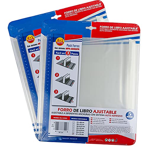 Bokomslag 10 enheter 31 x 55 cm, självhäftande och justerbar transparent självhäftande i de två ytterligheterna, paket med 10 delar bokskydd enkelt och bekvämt per kopia av boken