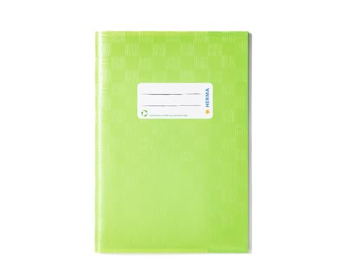 HERMA 7435 Notebookskydd A5 Raffia ljusgrön, förpackning med 25, bokskydd med etikett och Raffia-struktur tillverkad av hållbar och avtorkningsbar polypropylenfilm, anteckningsblock fodral set för