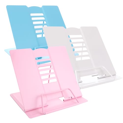 APACALI 3 stycken bokstativ metall, 6 nivåer justerbart lässtativ för läsning, metallkokbokhållare, hopfällbart bokstativ för att hålla ordmönster, iPads, recept, vit, blå, rosa