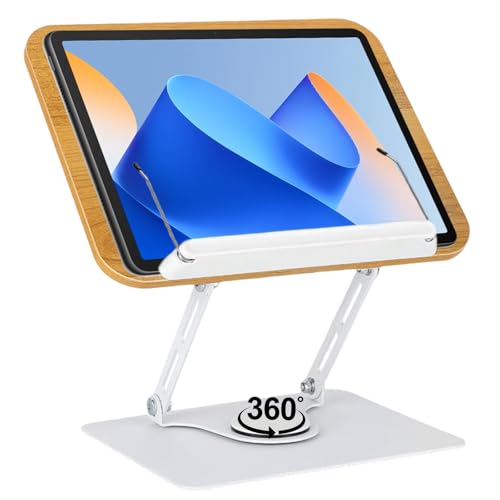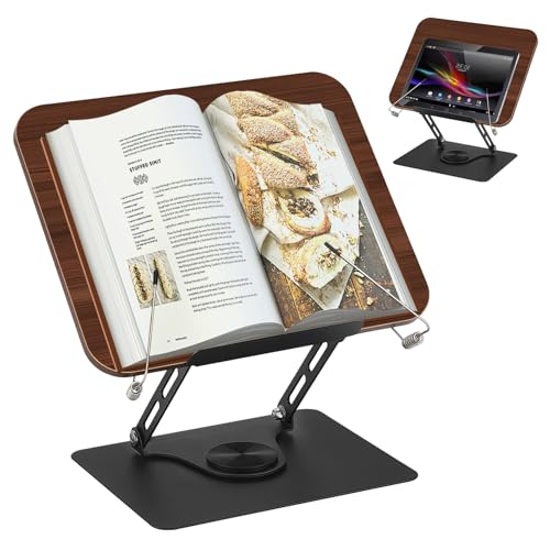 Tounee Bokstativ för läsning, justerbar bokhållare med 360° vridbar bas, vikbar kokbokstativ receptbokhållare