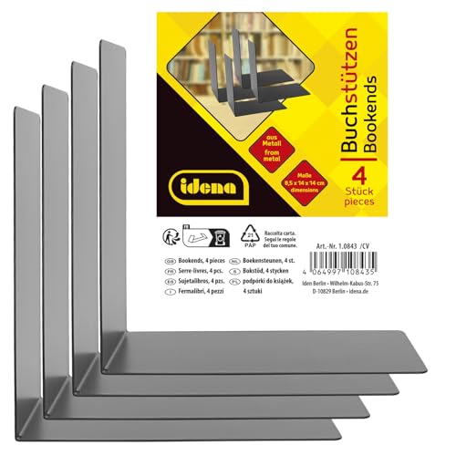 Idena 10843 – bokstöd metall, svart, 4 bokstativ, 14 x 14 x 8,5 cm, bokhållare för bokhyllor