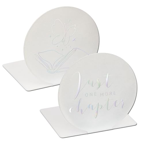 moses. Bokstöd Holographic set med 2, dekorativt bokstativ i metall med gnistrande holografieffekt, silverbokstöd med graverat ordspråk och bokmotiv i New Adult design