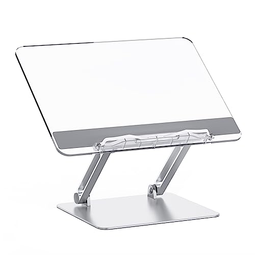 Bokstativ för läsning, aluminium och akryl kokbok lärobok skrivbordsstativ, justerbar och vikbar display bokhållare, också kompatibel med bärbara datorer och surfplattor