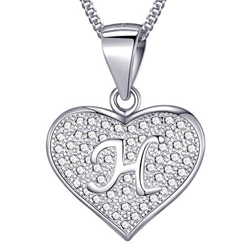 Masada Hjärtformat bokstavshalsband i 925 sterlingsilver, initialhänge med zirkoniastenar, bokstaven H, personligt alfabet, för tonåringar och flickor, 46 cm (18 tum) kedja, i sammetspåse