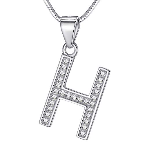 Masada Bokstavshalsband i 925 sterlingsilver, initialhänge med zirkoniumstenar, bokstaven H, personlig bokstav, för tonåringar, 46 cm (18 tum) kedja, i sammetspåse