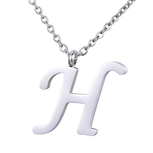 Morella damhalsband med bokstaven H hänge rostfritt stål silver i smyckespåse