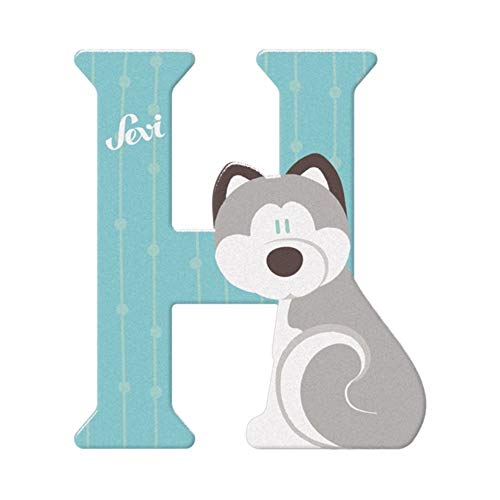 Sevi 83008 djur träbokstäver H Husky ca. 10 cm, dörrbokstäver för barnrum, ABC, pedagogiska leksaker av trä, pedagogiska leksaker för barn från 3 år, bokstaven djur, blå