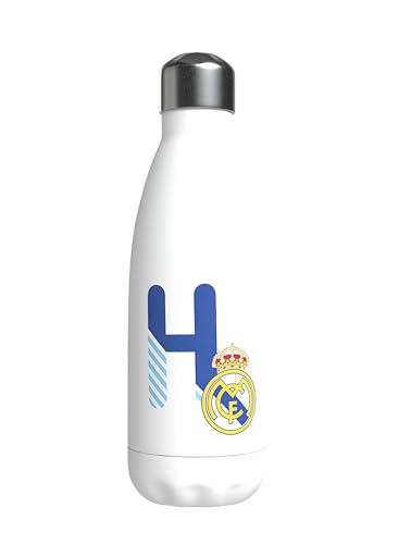 Real Madrid - vattenflaska i rostfritt stål, hermetisk stängning, med bokstaven H-design i blått, 550 ml, vit färg, officiell produkt (CyP Brands)