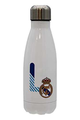 Real Madrid - vattenflaska i rostfritt stål, hermetisk förslutning, med bokstaven L-design i blått, 550 ml, vit färg, officiell produkt (CyP Brands)