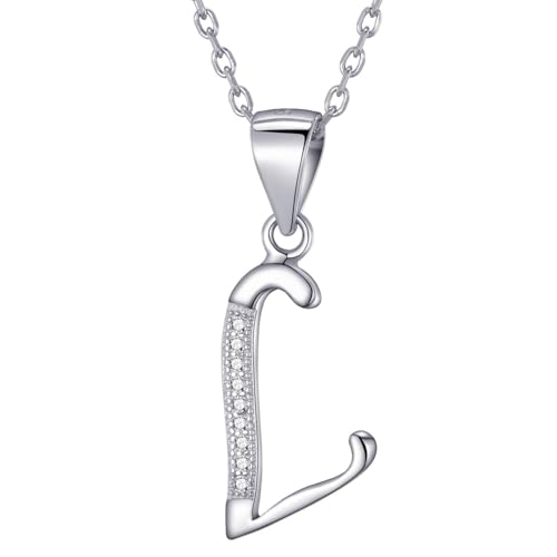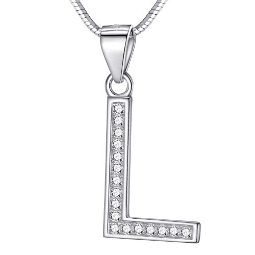Masada Bokstavshalsband i 925 sterlingsilver, initialhänge med zirkoniumstenar, bokstaven L, personlig bokstav, för tonåringar, 46 cm (18 tum) kedja, i sammetspåse