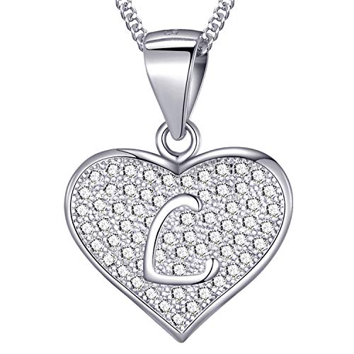 Masada Hjärtformat bokstavshalsband i 925 sterlingsilver, initialhänge med zirkoniastenar, bokstaven L, personligt alfabet, för tonåringar och flickor, 46 cm (18 tum) kedja, i sammetspåse