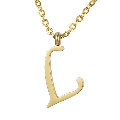 Morella damhalsband med bokstaven L hänge rostfritt stål guld i smyckespåse