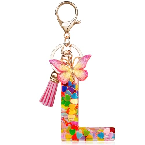 OSDUE Rosa Fjäril Nyckelring för Kvinnor och Flickor - Bokstaven L, En Storlek