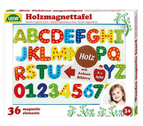 Lena 65822 – magnettavla i trä, med magnetisk tavla ca 44 x 38 cm, 26 magnetiska bokstäver och 10 magnetsiffror, magnetisk trätavla för barn från 3 år, barntavla inlärningsset för att skriva och