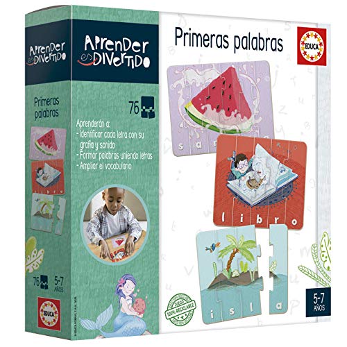 Educa - Att lära sig är roligt | första ord. Pedagogiskt spel för barn från 5 år. Lär dig att bilda ord genom att sammanfoga bokstäver. Innehåller 76 stycken som utgör 16 brädor (18697)