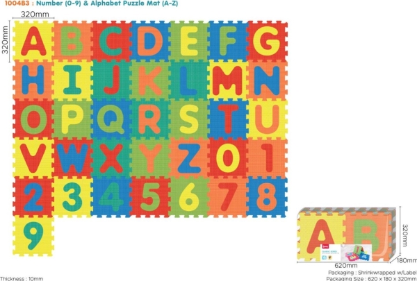 Triton 36 Pusselmatta För Barn 10M+ Avtagbara Siffror Bokstäver + Eva-Skum + Hopfällbara Figurer