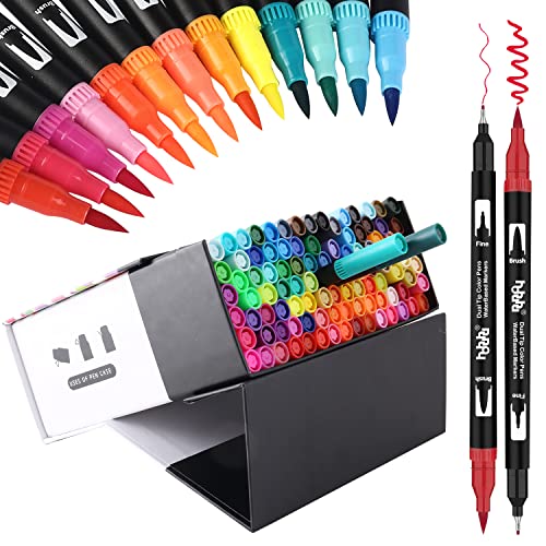 hhhouu 100 färger filtpennor akvarell tuschpennor med dubbla spetsarmed, fineliner, penselmarkörer för barn, vuxna, kalligrafi, bokstäver, journal, klotter, färgläggning och skissning hho-100B