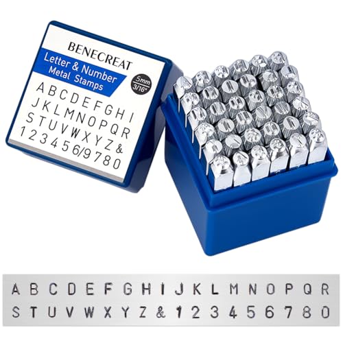 BENECREAT 36-pack 5 mm-stämplar med bokstäver och siffror, metallstämpelset med förvaringsask, galvaniserade verktyg i hårt kolstål för prägling av metall, smycken, läder, trä
