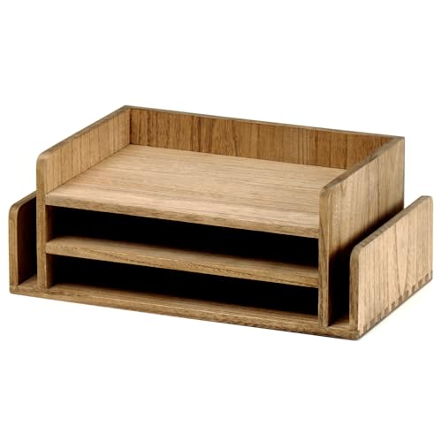 KIRIGEN Skrivbordsorganisatör i trä surfplatta för sortering av bokstäver, surfplatta för telefon och portfölj för mappar, brev, post och dokument brun färg