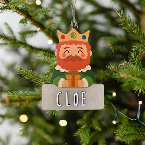 WONDEE Personliga juldekorationer i trä [7 modeller], juldekoration trollkarl kung, julbollar/ornament för att anpassa med namn hemma med familjen (med bokstäver och strängsats)