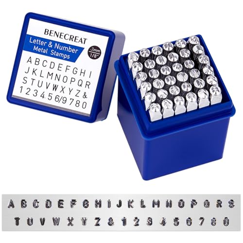 BENECREAT 36-pack 3 mm stämplar med bokstäver och arabiska siffror, metallstämplar med verktygslåda – galvaniserade verktyg i hårt kolstål för prägling av metall, smycken, läder, trä