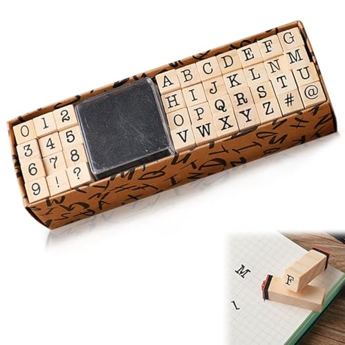 Kurtzy Alfabet Bokstäver, Nummer och Symboler Stämpel i Trä (70 Delar) – Mångsidig Hantverk Bläckstämpel Kit med Gammeldags Förvaringslåda – För Kort, DIY Planerare, Klistring & Klippning & Hantverk