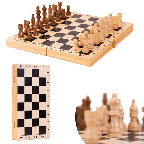 WILSON JEUX - 28 cm schack tryckt hopfällbar låda - hopfällbart schackbräde i trä - bokstäver och krypterat schackbräde - ECH21001